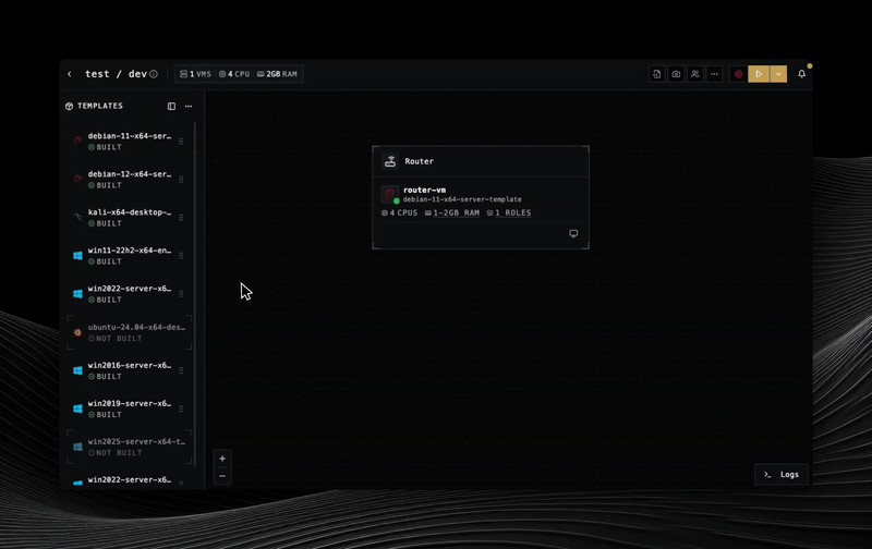Designed for teams, Ludus supports multiple isolated ranges on a single server
